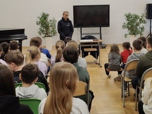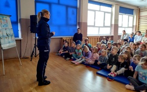 Ferie już niebawem dlatego policjanci przekazują dzieciom dawkę wiedzy na temat bezpieczeństwa. Mundurowi odwiedzają szkoły aby przypominać dzieciom o podstawowych zasadach bezpieczeństwa.