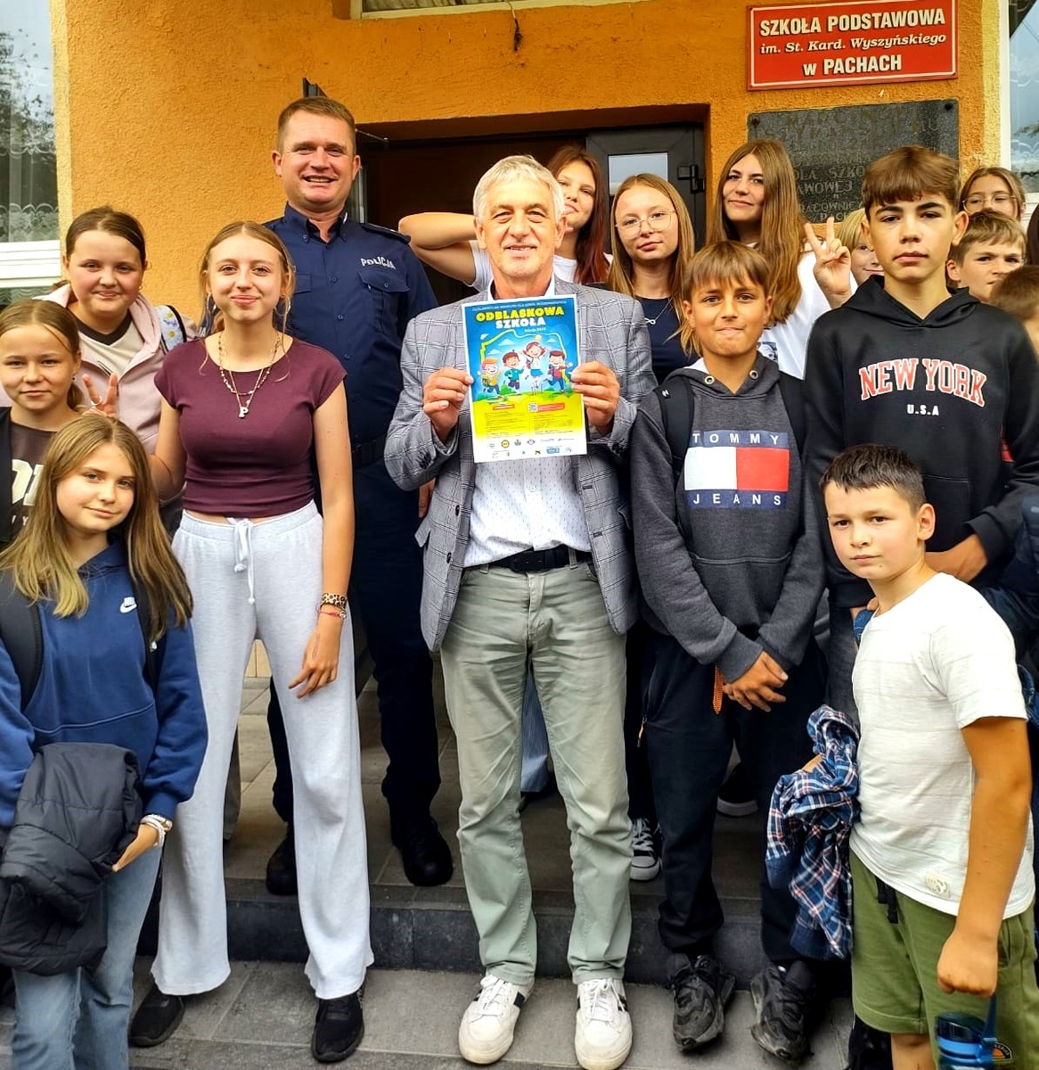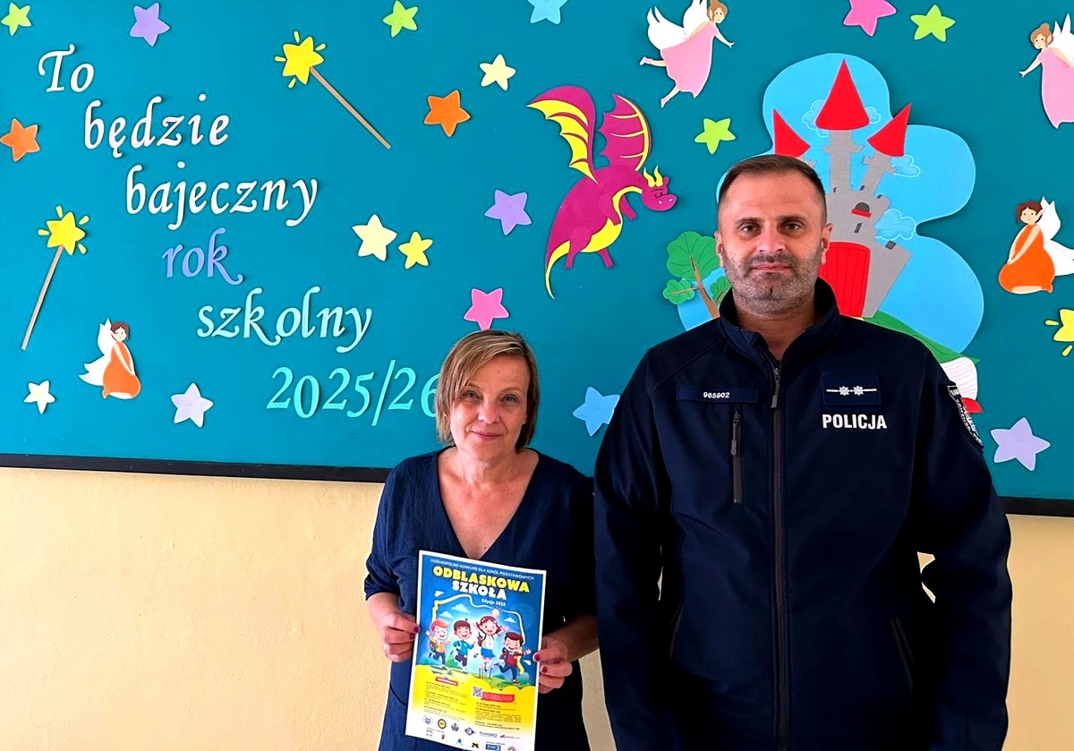 Dzielnicowi z Komisariatu Policji w Białej Rawskiej propagują konkurs ,,Odblaskowa Szkoła”, którego celem jest podnoszenie świadomości w zakresie bezpieczeństwa najmłodszych uczestników ruchu drogowego. W ramach działań profilaktycznych funkcjonariusze odwiedzają szkoły, spotykają się z dyrektorami, zachęcając do udziału w przedsięwzięciu.