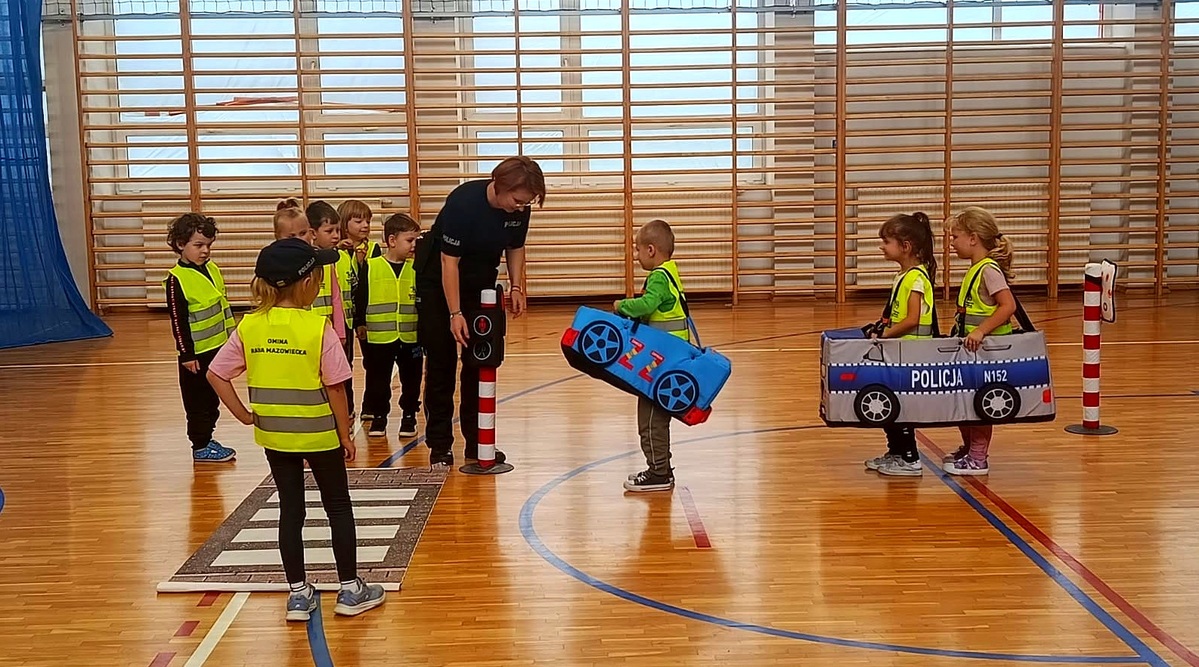 Rawski profilaktyk aspirant Małgorzata Lewandowska spotkała się z uczniami Szkoły Podstawowej w Kurzeszynie, aby poprzez zabawę uczyć najmłodszych zasad bezpieczeństwa.