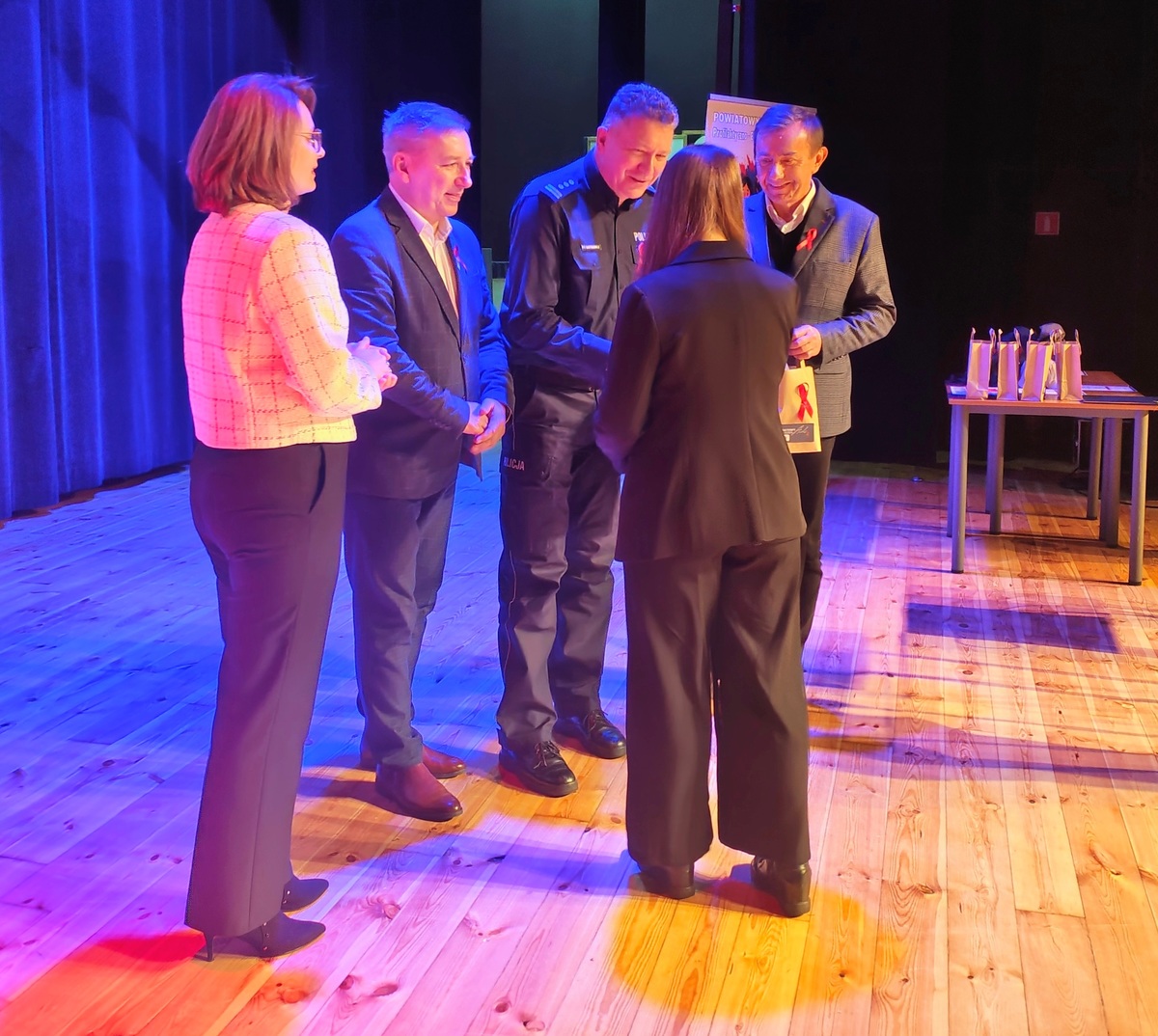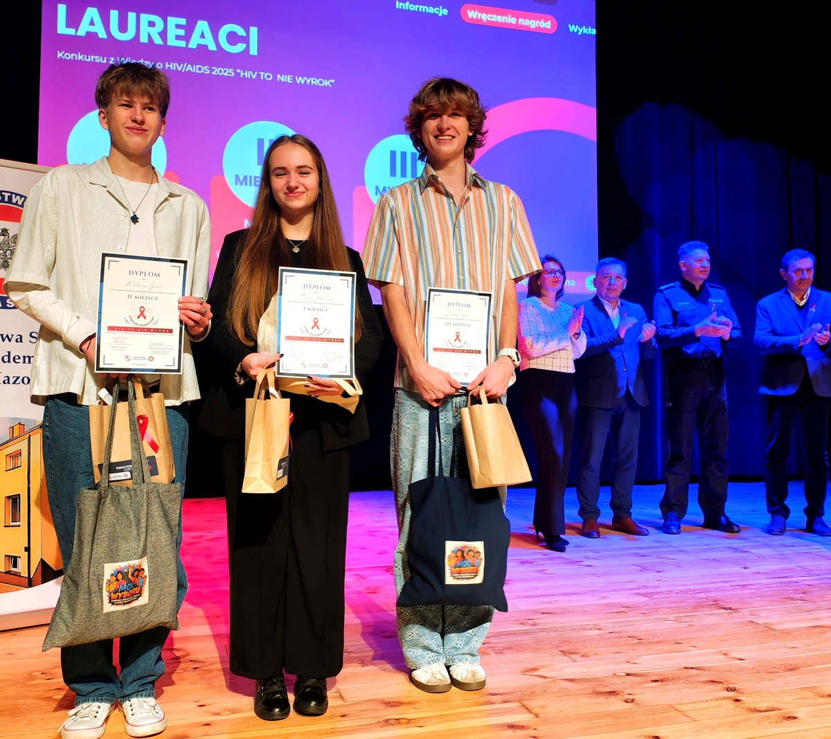 Policjanci, pracownicy sanepidu oraz dyrekcja Liceum Ogólnokształcącego im. Marii Curie- Skłodowskiej wręczyli zwycięzcom nagrody za uczestnictwo w konkursie ,,HIV to nie wyrok” organizowanego w ramach policyjnego planu ,,MOC WYBORU”.