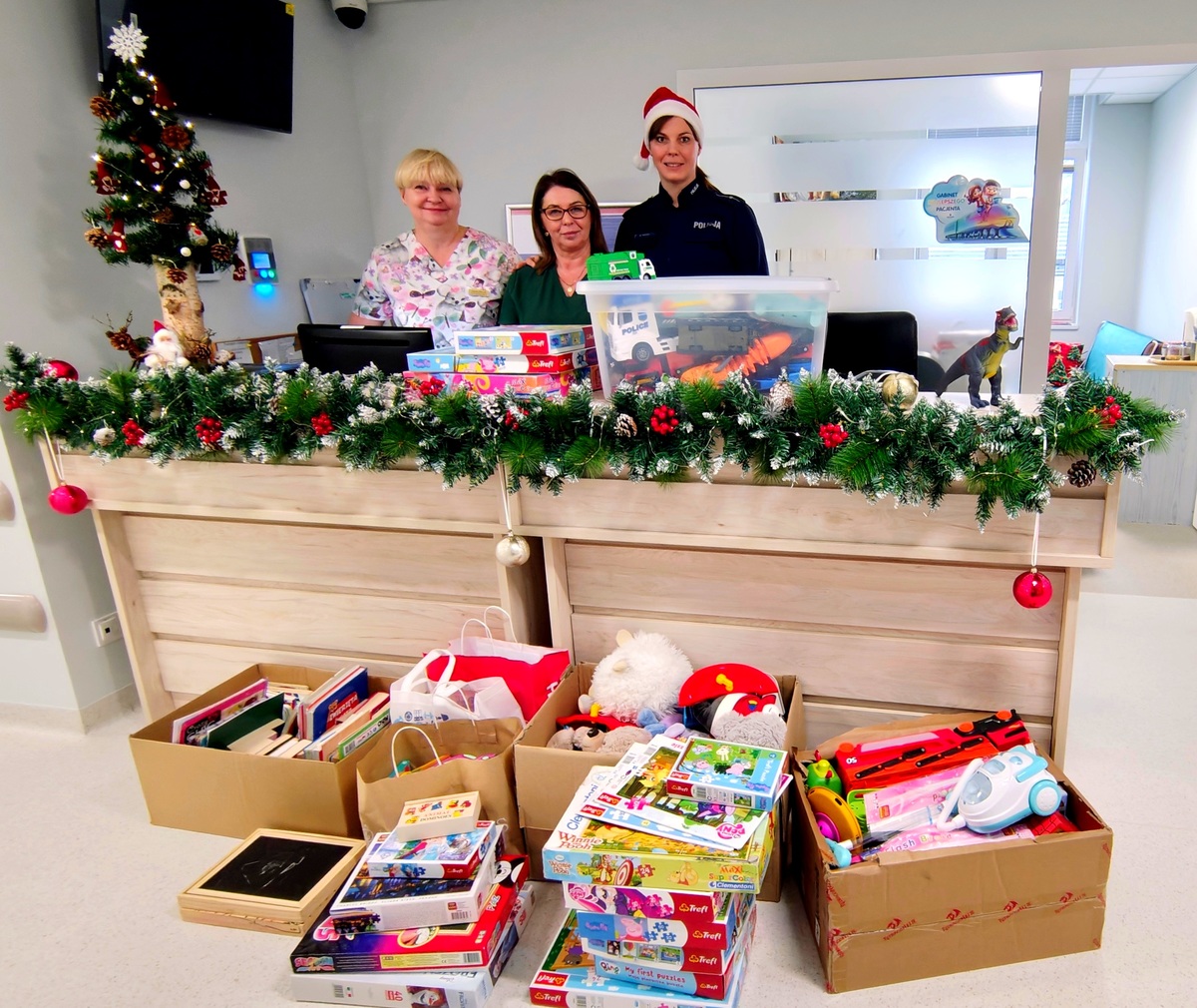 Dzielnicowa z prezentami na oddziale pediatrii