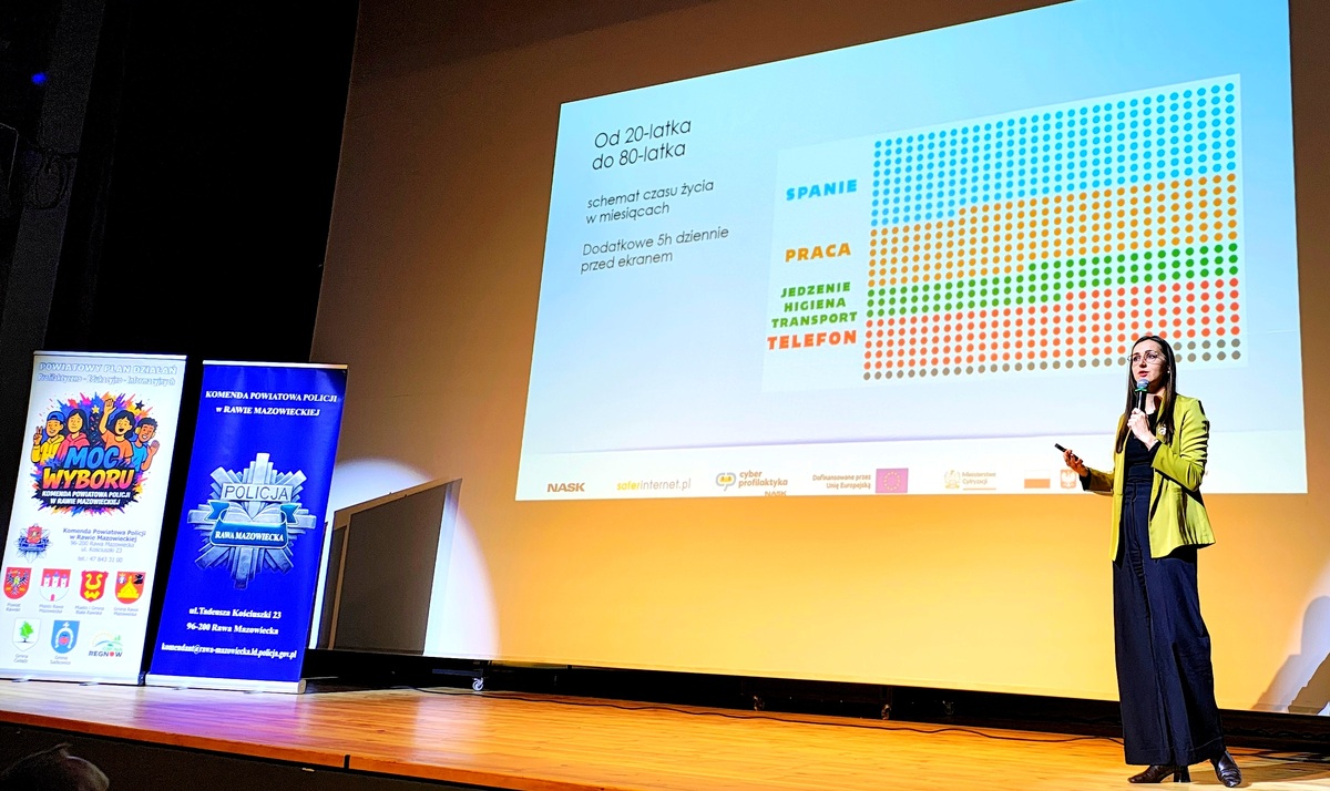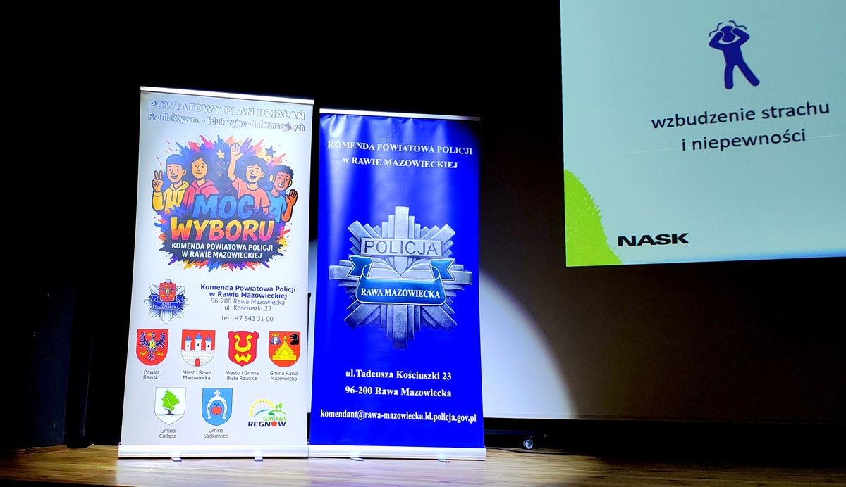W Miejskim Domu Kultury w Rawie Mazowieckiej odbyły się spotkania edukacyjne prowadzone przez ekspertów NASK. NASK to Państwowy Instytut Badawczy. Jest to instytucja zajmująca się bezpieczeństwem polskiej cyberprzestrzeni, rozwojem sieci, rejestracją domen .pl oraz działalnością naukową. W wydarzeniu uczestniczyli uczniowie klas drugich szkół ponadpodstawowych z powiatu rawskiego oraz w odrębnej części nauczyciele. Inicjatywa została zrealizowana w ramach powiatowego planu profilaktyczno-edukacyjno-informacyjnego „MOC WYBORU”.