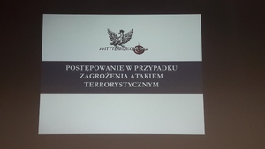 - Szkolenie z zakresu działań antyterrorystycznych Dyrektorzy placówek oświatowych i pracownicy urzędów z terenu naszego powiatu uczestniczyli w szkoleniu dotyczącym zasad postępowania w przypadku zagrożenia atakiem terrorystycznym.