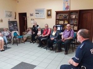 Na spotkaniu z seniorami dzielnicowy mówił nie tylko o ich bezpieczeństwie. Przypomniał także założenia Krajowej Mapy Zagrożenia Bezpieczeństwa i aplikacji "Moja Komenda" oraz programu "Dzielnicowy bliżej nas".