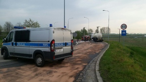 Rawscy policjanci niemal przez 2 godziny zabezpieczali fragment drogi, na którą rozlał się olej rzepakowy z rozszczelnionej cysterny.