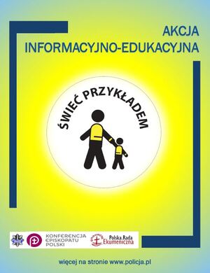 - "Świeć przykładem" Policja wspólnie z Konferencją Episkopatu Polski oraz Polską Radą Ekumeniczną przygotowała akcję informacyjno-edukacyjną pod nazwą „ŚWIEĆ PRZYKŁADEM!”, skierowaną do pieszych jako niechronionych uczestników ruchu drogowego.